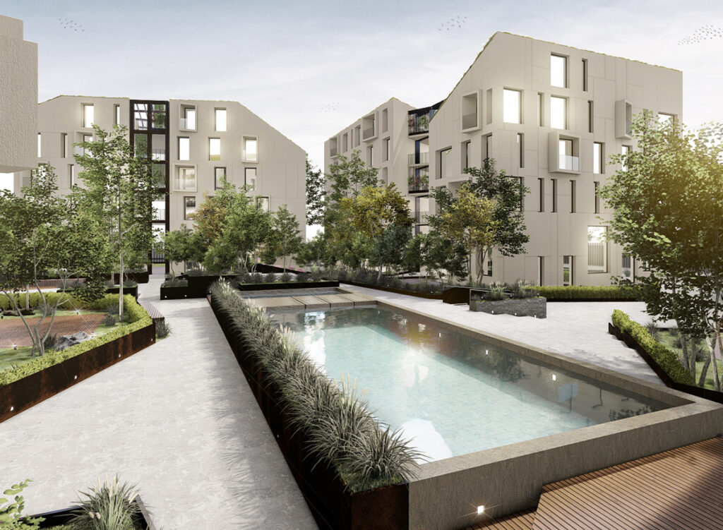 Tra le amenities del progetto: piscina outdoor con solarium, area giochi, area fitness, area sport, area coworking, bike sharing.