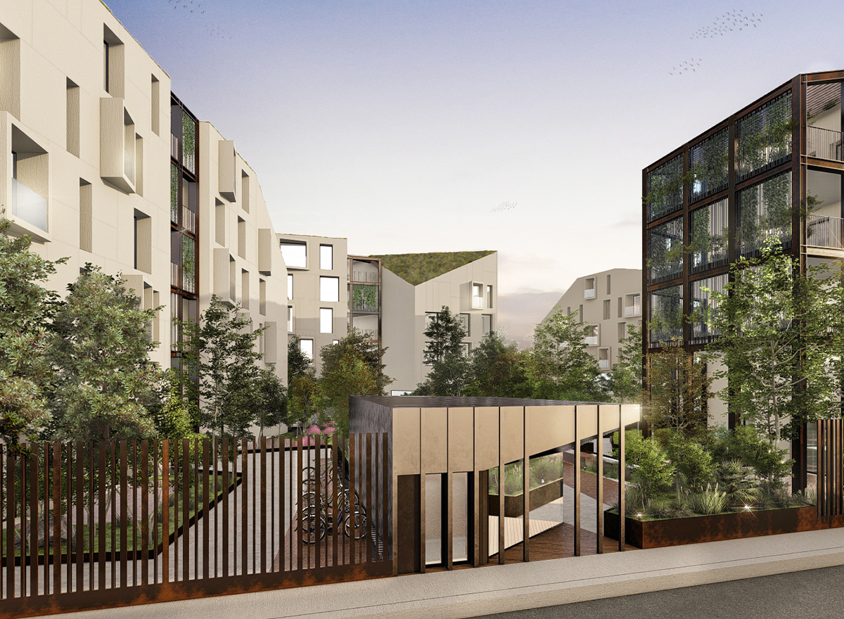 Particolare attenzione si pone nella progettazione del verde comune e privato, prevedendo la piantumazione di due polmoni verdi lungo i confini del lotto, la realizzazione di orti privati pensili, giardini attrezzati comuni e tetti verdi estensivi.